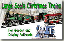 Large Scale Christmas Trains - I believe that every Large Scale train looks as good around a Christmas tree as it does in the garden. But if you are looking for a train that says Christmas, this page will bring you to some attractive models that are accurate in everything but the Christmas paint colors and labeling.